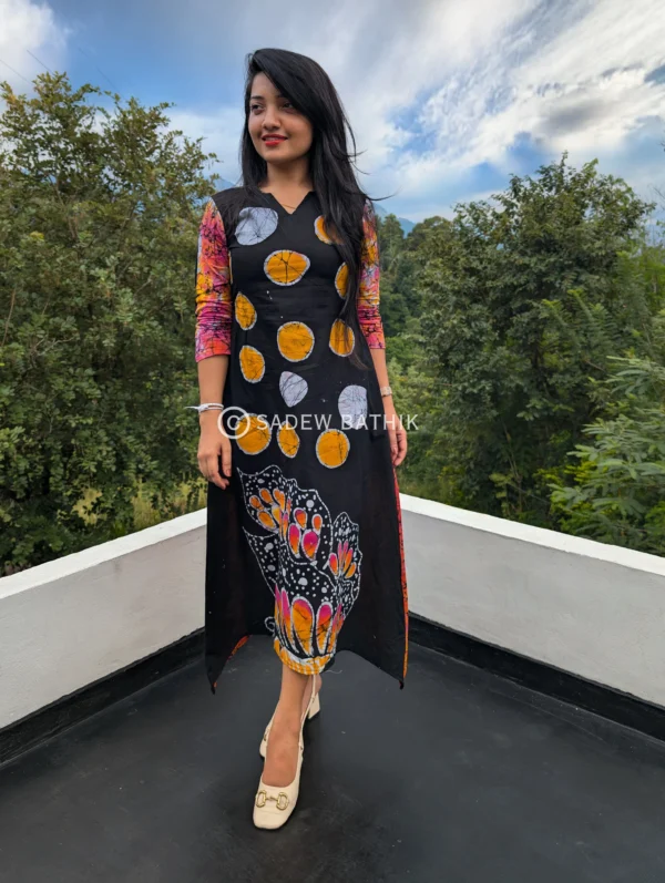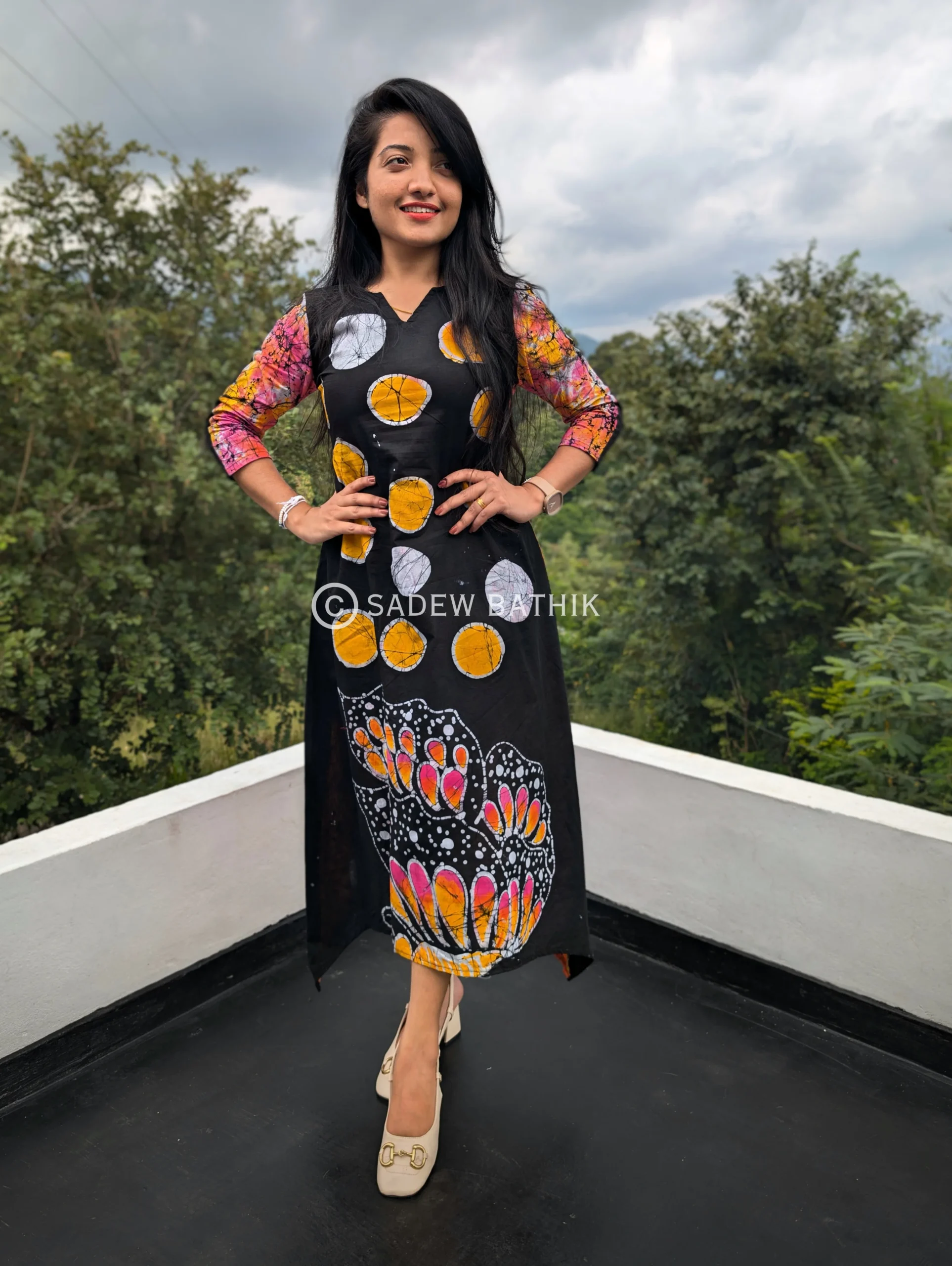 Sadew Bathik is making fully handcrafted srilankan batik sarees & Batik frocks.This Cotton material drapes beautifully and comfortable to wear.