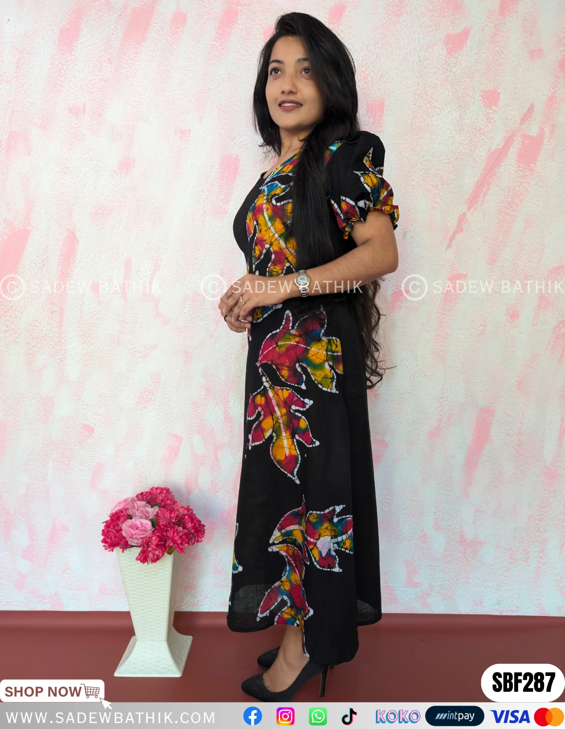 Sadew Bathik is making fully handcrafted Sri Lankan batik sarees & Batik Dresses.This Normal Voile material drapes beautifully and comfortable to wear.