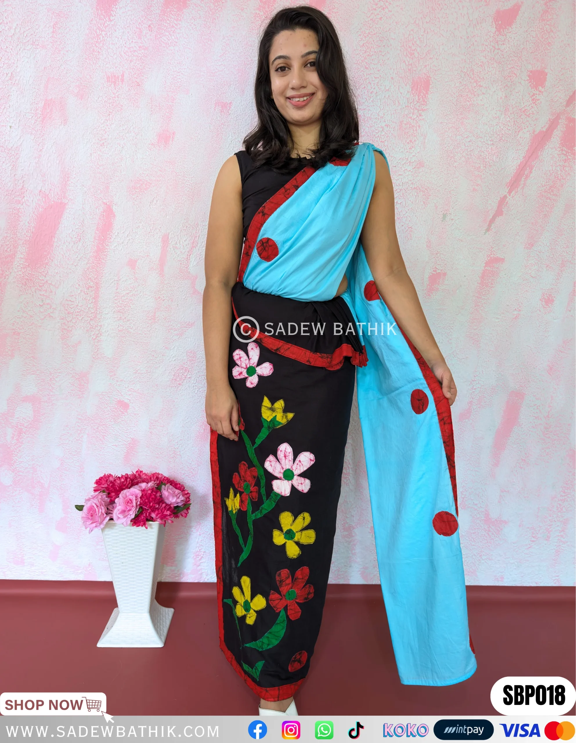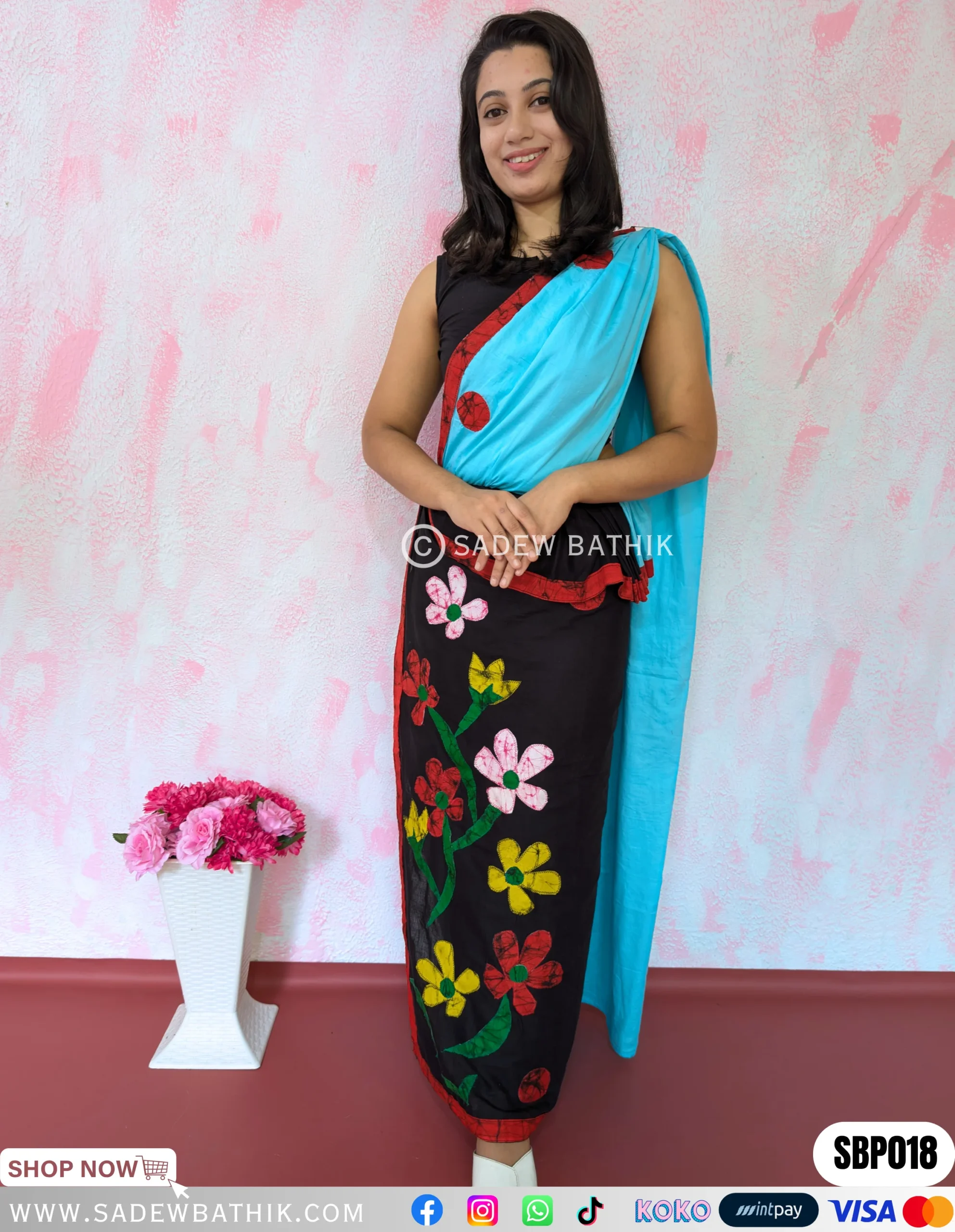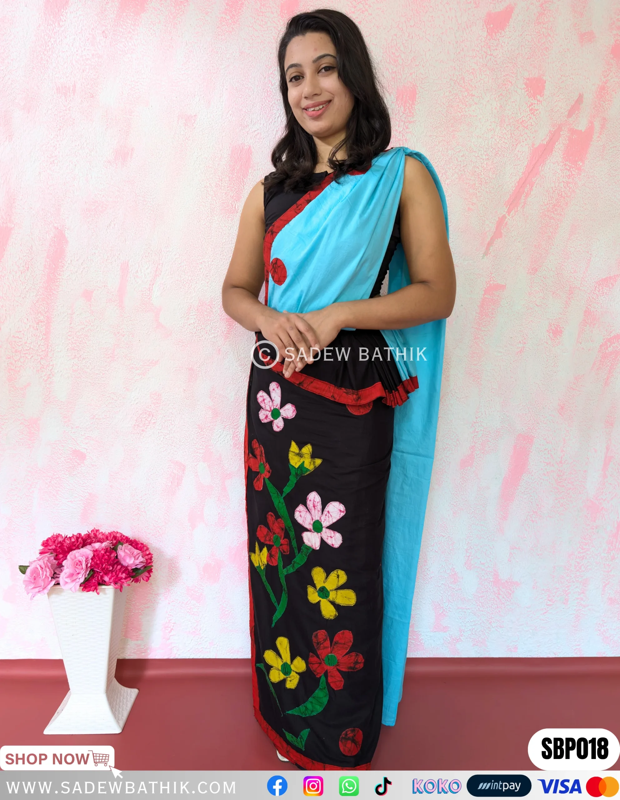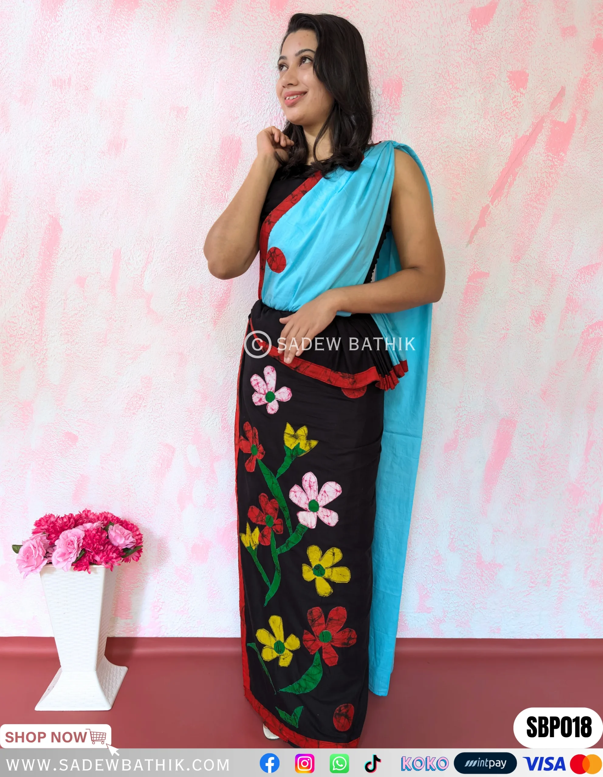 The pleats of the saree can be draped to the left side only(Kandyan style only)