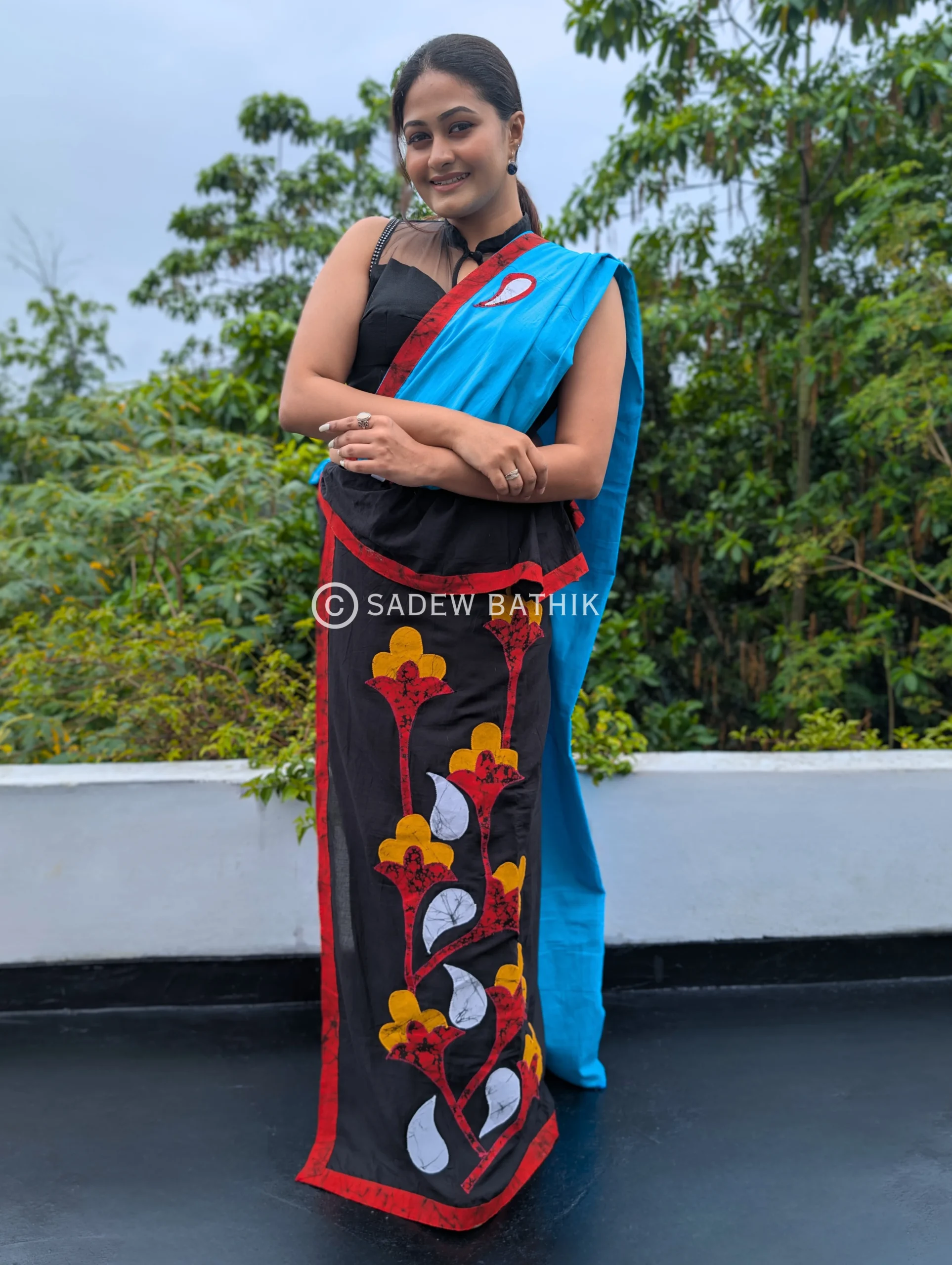 Crafted from premium super voile material, this saree combines traditional Kandyan elegance with artistic batik patchwork. Lightweight, soft, and perfect for any occasion.it’s a timeless addition to your wardrobe.