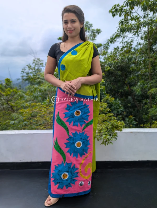 Crafted from premium super voile material, this saree combines traditional Kandyan elegance with artistic batik patchwork. Lightweight, soft, and perfect for any occasion.it’s a timeless addition to your wardrobe.