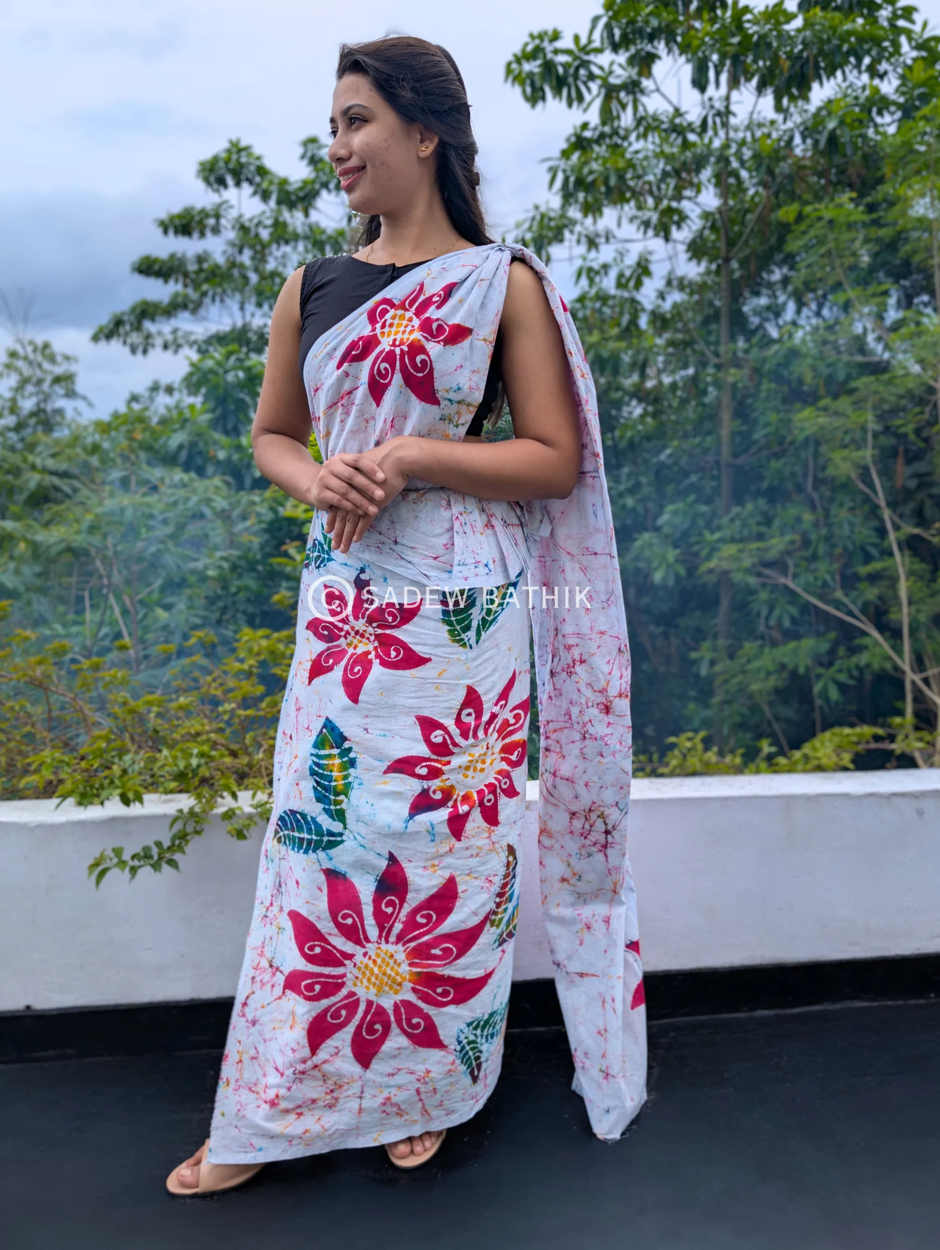 Sadew Bathik is making fully handcrafted srilankan batik sarees & Batik Dresses.This Normal Voile material drapes beautifully and comfortable to wear.