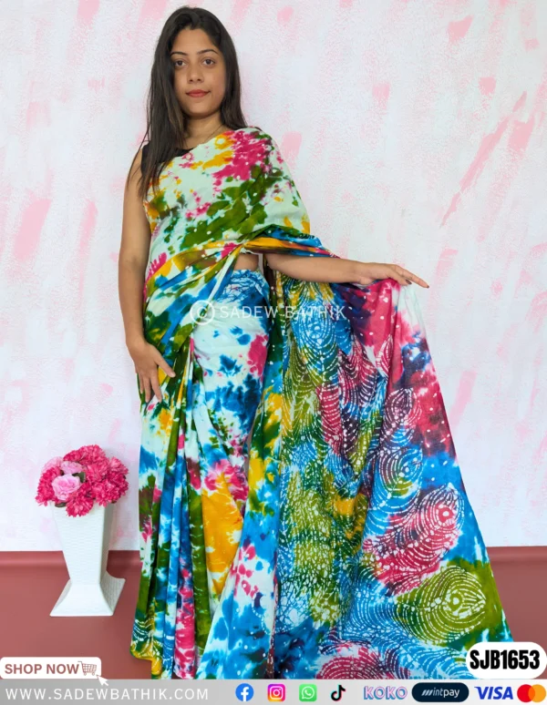 Sadew Bathik is making fully handcrafted srilankan batik sarees & Batik Dresses.This Normal Voile material drapes beautifully and comfortable to wear