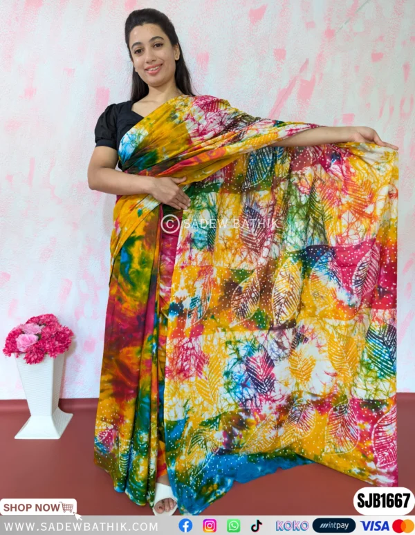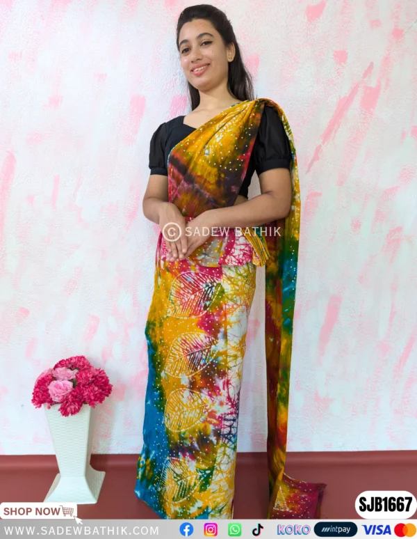 Sadew Bathik is making fully handcrafted srilankan batik sarees & Batik Dresses.This Normal Voile material drapes beautifully and comfortable to wear