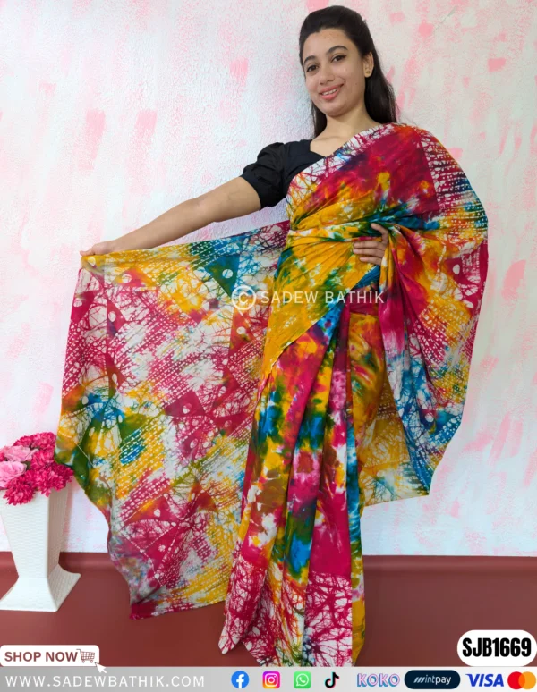 Sadew Bathik is making fully handcrafted srilankan batik sarees & Batik Dresses.This Normal Voile material drapes beautifully and comfortable to wear